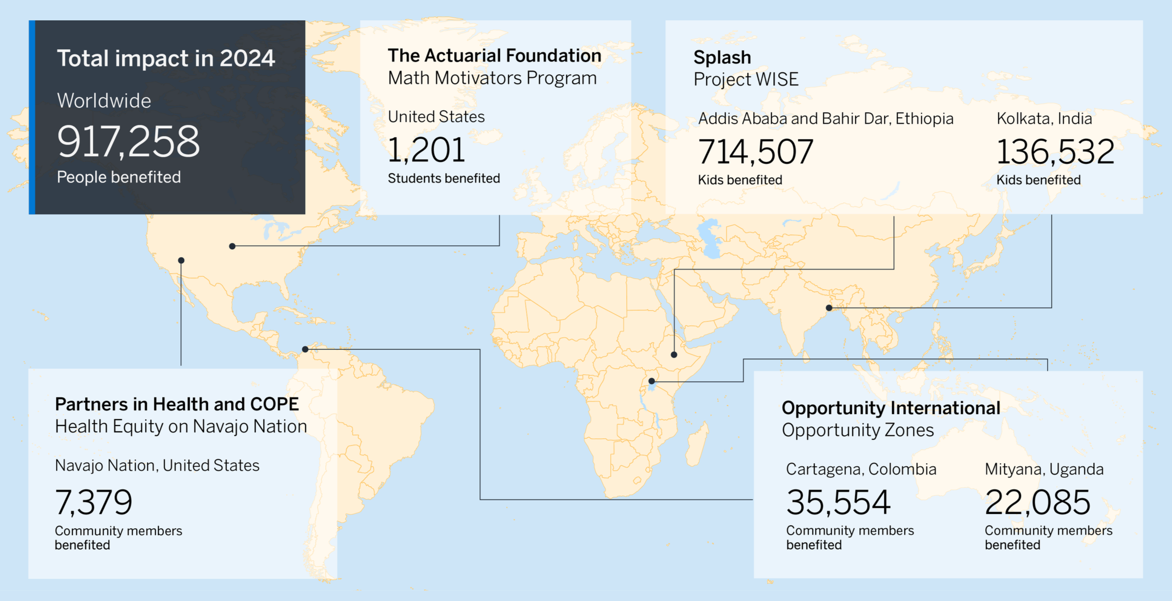 Milliman’s culture of giving focuses on both global large-scale transformational solutions to complex issues and local support of charitable organizations. Learn how we work to protect the health and financial well-being of people everywhere.
