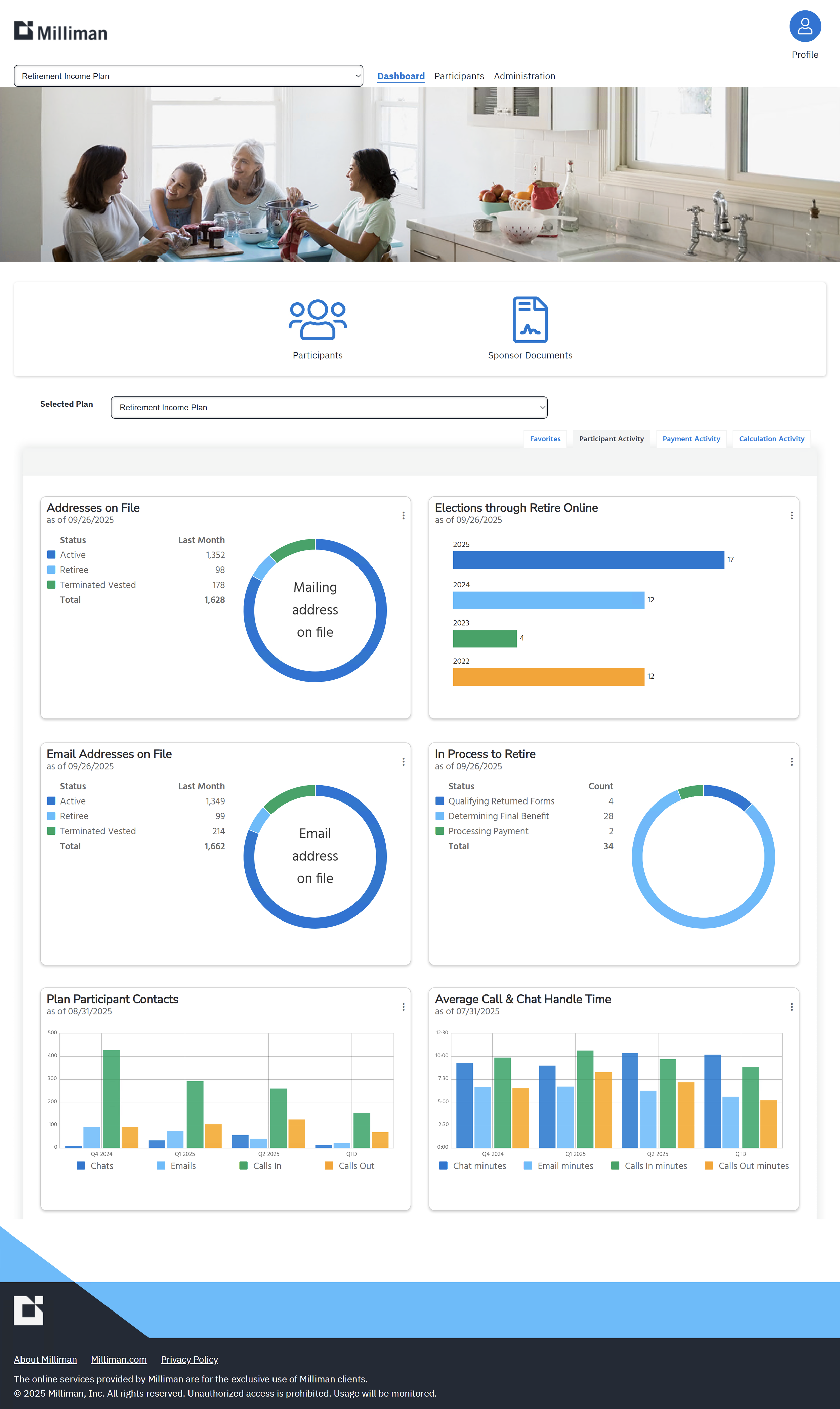 Real-time data, participant search, activity tracking, and interactive communication with Milliman; rollout to all DB clients is now in process.