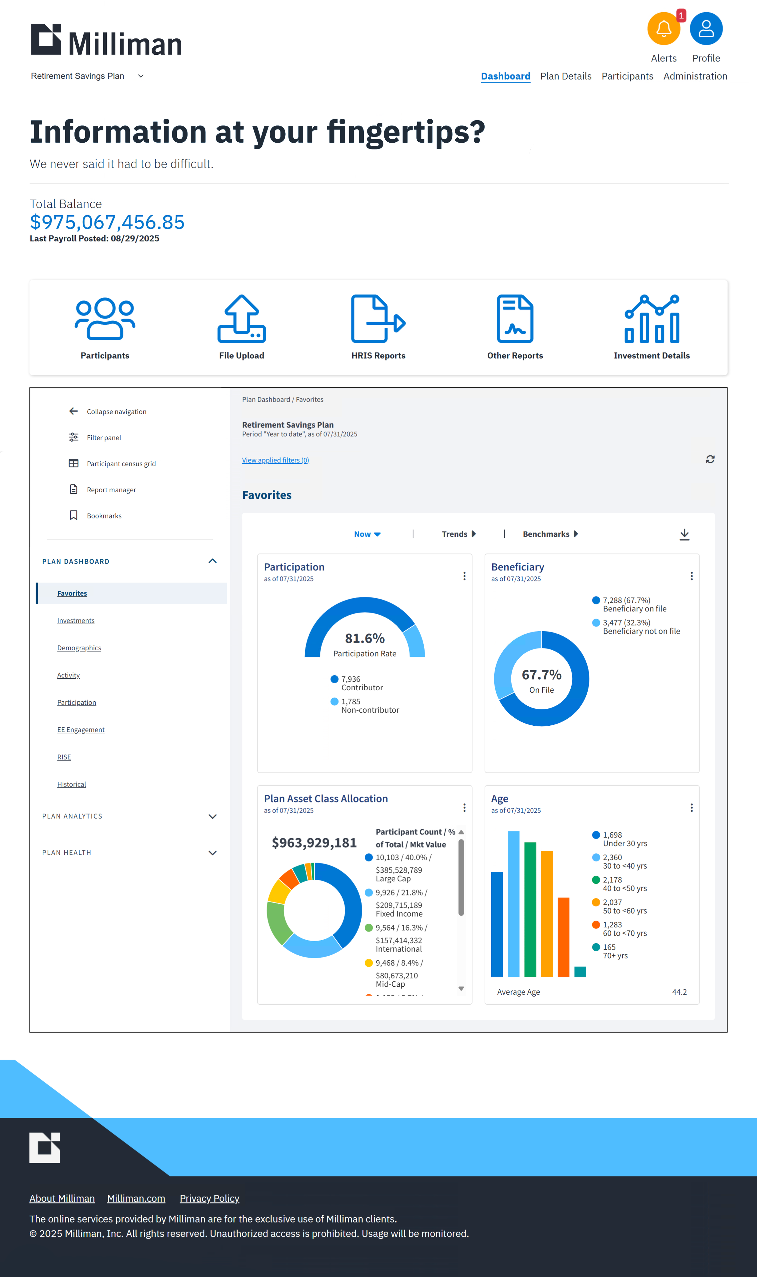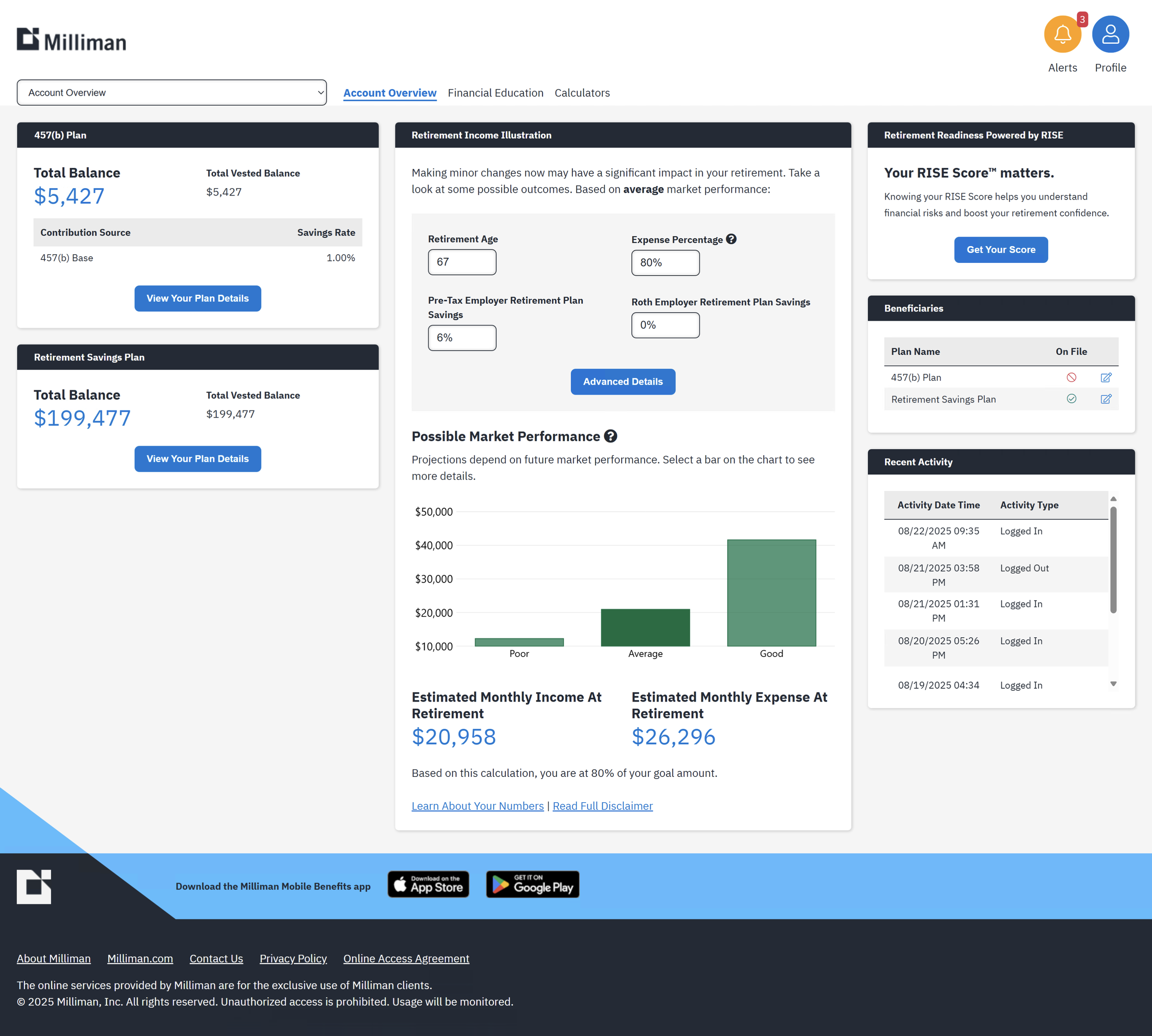 Our enhanced participant site now offers personalized dashboards, streamlined retirement tools, faster security monitoring, and expert financial resources — helping participants make confident decisions.